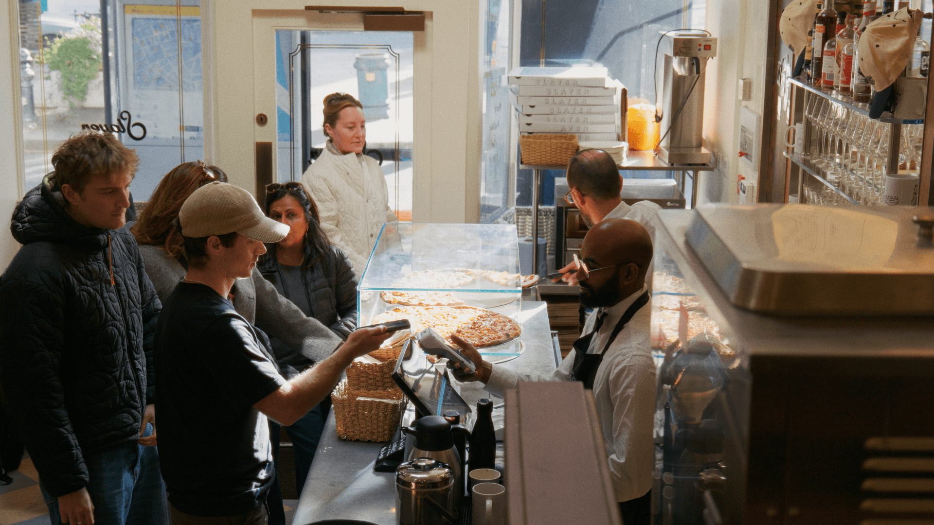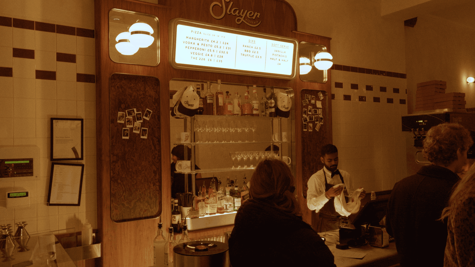 Slayer Pizzeria is a space built around two distinct concepts: a fast-paced slice shop and a comfortable, romantic restaurant.